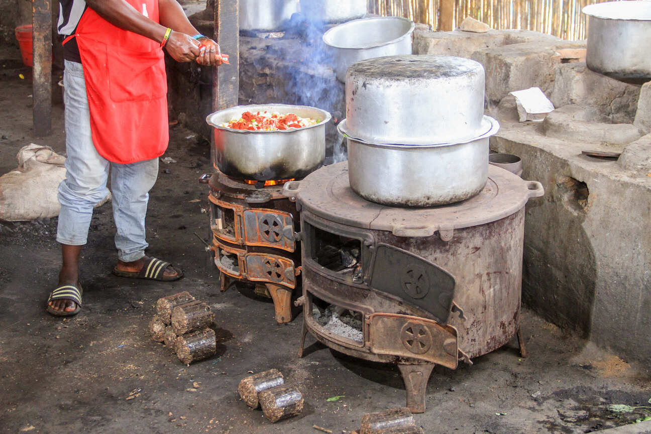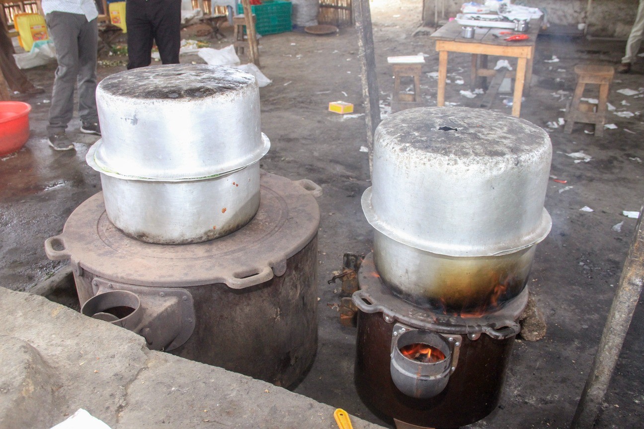 Traditional restaurant in Burundi relies on wasteful 3-stone open fires or outdated stoves with a mere 10-15% efficiency, producing harmful smoke that endangers health. With superior efficiency and minimal smoke, they create safer, healthier work environments, particularly for women who have praised the improved conditions.
